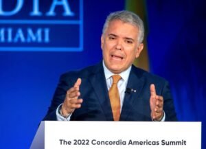 El presidente saliente, Iván Duque, hizo una intervención en un desayuno privado con empresarios estadounidenses en referencia a los comentarios que...