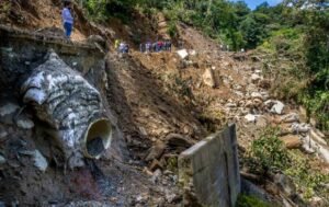 El paso por el sector afectado de la carretera tras el derrumbe es restringido. Por el lugar no pueden transitar...
